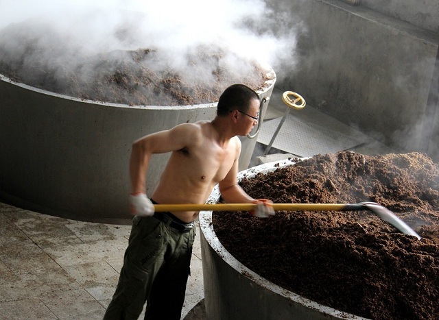 釀酒的原理其實(shí)很簡單,就是利用微生物發(fā)酵生產(chǎn)含一定濃度酒精飲料的過程,當(dāng)然,實(shí)際操作的時候遠(yuǎn)遠(yuǎn)不是這么簡單。大致來講,一瓶優(yōu)質(zhì)白酒的誕生,一般要經(jīng)過這樣幾個步驟:選料、發(fā)酵、蒸餾、陳釀、勾調(diào)、灌裝。