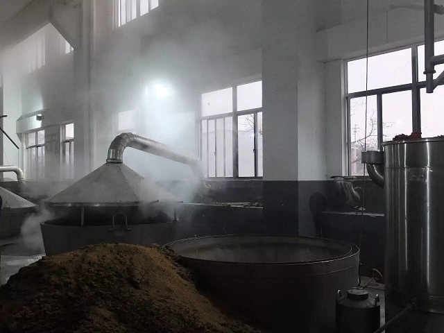 靠發(fā)酵產(chǎn)生的酒精度數(shù)其實(shí)很低,為了提高酒精度數(shù),一般還要進(jìn)行蒸餾提純,酒糟出池并均勻混入稻殼上甄,邊加料邊緩慢開啟蒸汽,滿甄后蓋上甄蓋,接通冷卻器,分段取酒。