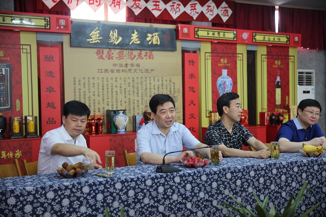 6月24日上午,無(wú)錫市市委副書(shū)記、市長(zhǎng)汪泉,市政府秘書(shū)長(zhǎng)許立新、惠山區(qū)區(qū)長(zhǎng)李秋峰以及江大生工學(xué)院許正宏院長(zhǎng)等領(lǐng)導(dǎo)調(diào)研玉祁酒業(yè),汪市長(zhǎng)強(qiáng)調(diào),玉祁酒業(yè)作為本地的中華老字號(hào)企業(yè),要依靠獨(dú)有的地域優(yōu)勢(shì),做大做強(qiáng)。江南大學(xué)生物工程學(xué)院的發(fā)酵專(zhuān)業(yè)作為全國(guó)知名專(zhuān)業(yè),一定要發(fā)揮其技術(shù)優(yōu)勢(shì),要與玉祁酒業(yè)深度合作,同時(shí)各級(jí)部門(mén)要給予支持,盡快打造出無(wú)錫乃至江南一款高品白酒。