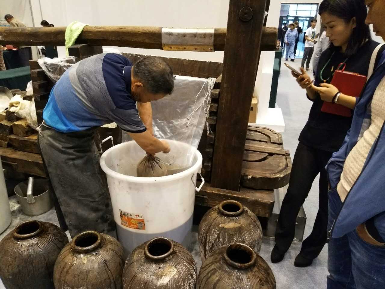 本屆文博會玉祁酒業(yè)將擁有幾十年釀酒經(jīng)驗的釀酒師傅帶到現(xiàn)場,并將公司的木榨運到會場,請師傅為大家現(xiàn)場展示傳統(tǒng)木榨黃酒工藝。