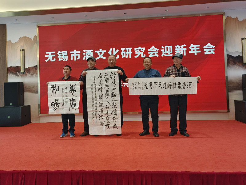 無錫市酒文化研究會(huì)迎新年會(huì)元月12日在玉祁酒業(yè)隆重舉行,作家、學(xué)者、書畫家等60余人歡聚一堂,回顧酒業(yè)光輝歷史,共話江南酒文化,滿懷激情暢想未來。通過玉祁酒業(yè)搭建的這一文化平臺(tái),新朋老友交流切磋,互遞信息,展露才藝,品酌玉祁酒業(yè)釀造的瓊漿玉液,其樂也融融,其情也深深。