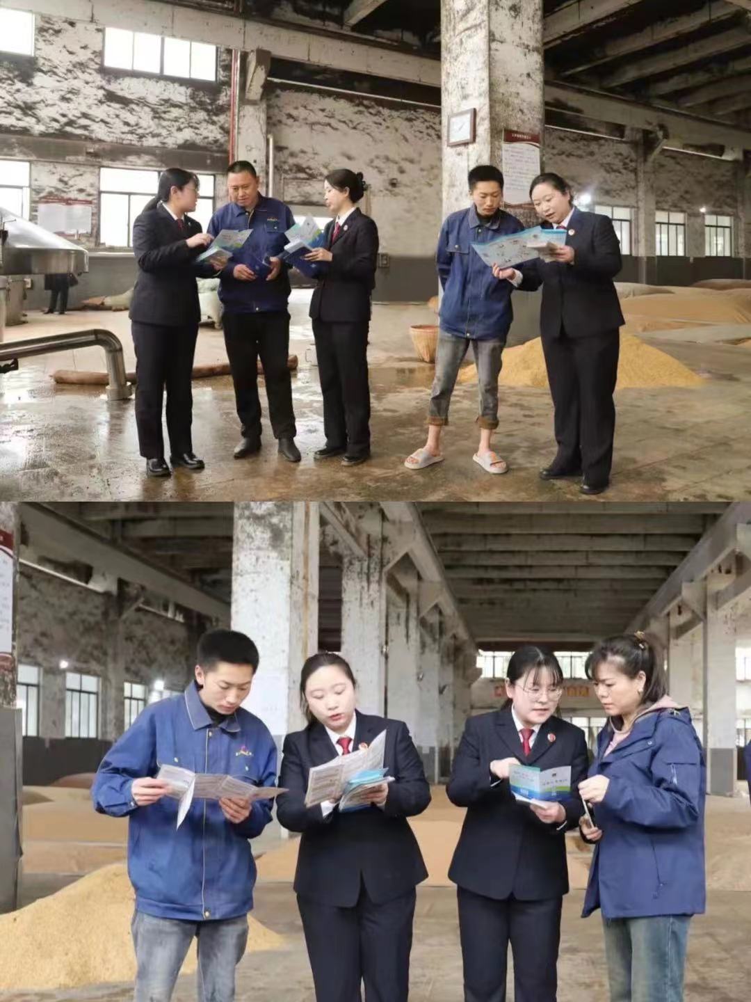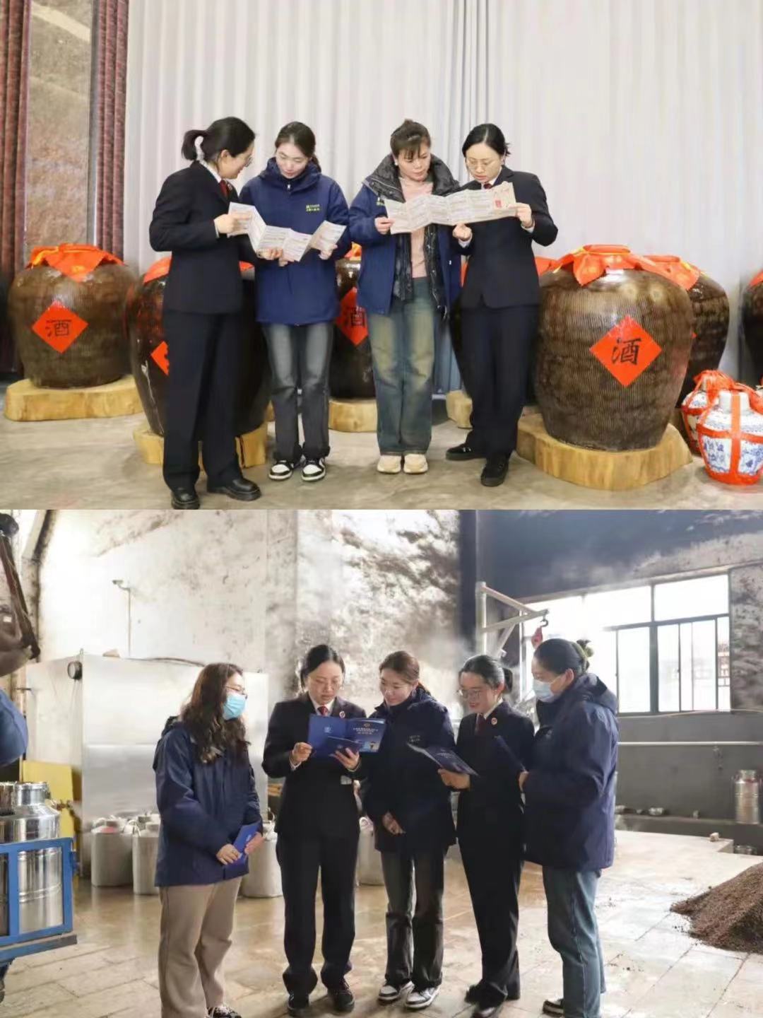 法律服務團一行來到玉祁酒業(yè)車間,與生產一線的工人師傅親切交流,她們觀看釀酒師傅現(xiàn)場展示白酒釀制技藝,了解生產經營情況,向公司相關管理人員宣傳刑事、民事、行政、公益訴訟等檢察職能,普及《民法典》等法律法規(guī),為企業(yè)發(fā)展提供法治保障。